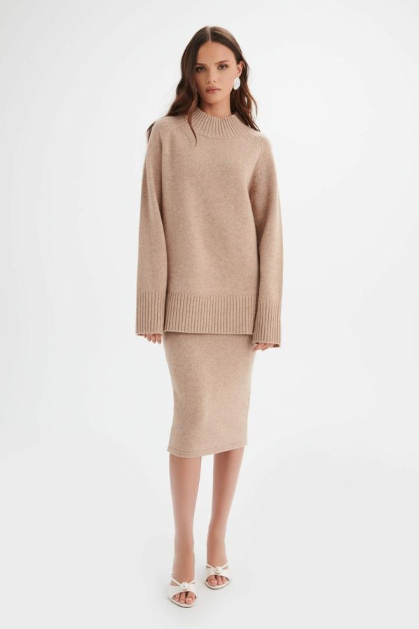 Experience exceptional comfort with our premium AMARI jumper, crafted using advanced yarn spinning techniques for superior quality. The luxurious wool-cashmere blend offers incredible softness against your skin, while expert knitting ensures lasting elegance. Designed with a flattering ribbed high neckline, deep hem detailing, and raglan sleeves for a timeless, versatile appearance that transitions seamlessly from day to evening.