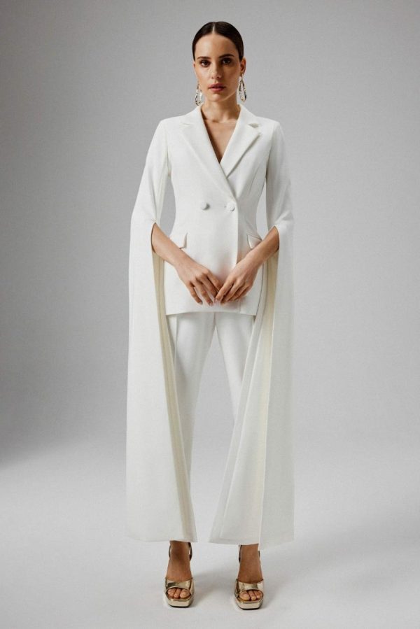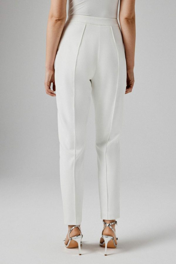 Elevate your professional wardrobe with our AMARIA Tailored Trousers in pristine white. Expertly crafted from premium crepe fabric, these sophisticated trousers feature a flattering high-waisted design with a tailored leg silhouette and functional slanted side pockets. The elegant pin tuck detail running down the center leg creates a streamlined, lengthening effect that enhances your figure beautifully. Ideal for office wear or formal events, the crisp white color delivers timeless elegance that complements any sophisticated outfit. Complete your polished look by pairing with our ZARA cape sleeve blazer for a perfectly coordinated ensemble.
