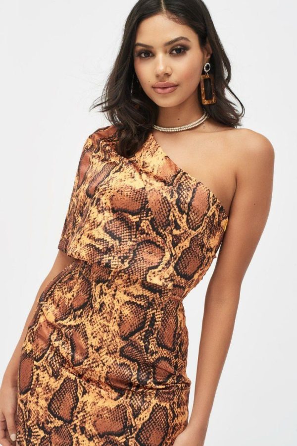 Meet our stunning new snake print design – the EMILIA one shoulder satin dress is an absolute wardrobe essential. Featuring gorgeous golden yellow and bronze tones, this dress captures that perfect golden hour glow. Expertly tailored at the waist with a fashionable caped shoulder design, it creates a flawless silhouette that complements your figure beautifully.
