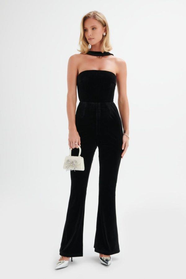 Experience ultimate sophistication with our HAZEL High Neck Velvet Jumpsuit, designed to deliver exceptional style and comfort. Made from premium black velvet, this jumpsuit features a sleek curved bandeau neckline and high neckband that creates a flattering silhouette. The fit-and-flare leg design and dramatic low back with contemporary cut-out detail offer modern elegance. Ideal for formal events, evening gatherings, and special occasions, the HAZEL Jumpsuit ensures you’ll stand out with confidence. Also available in a midi dress version.