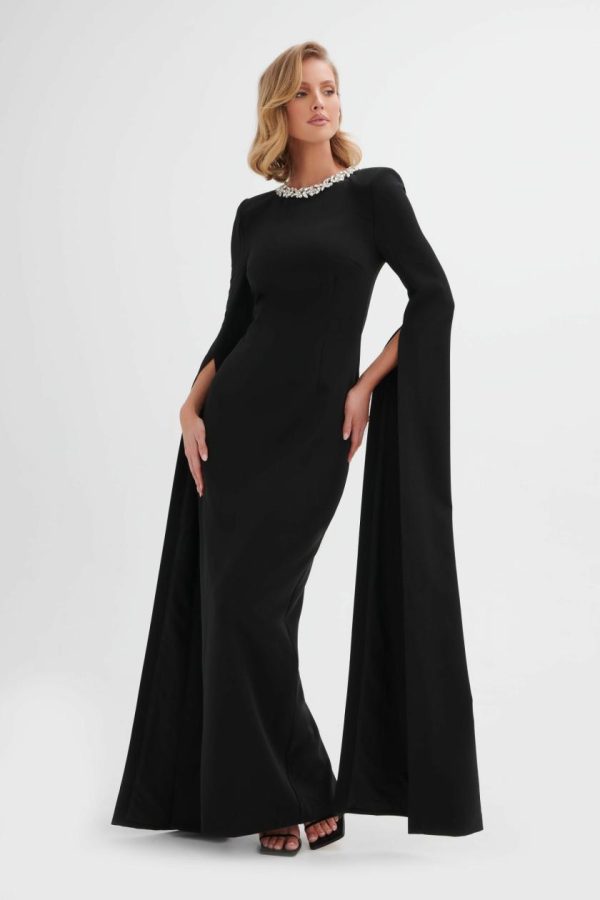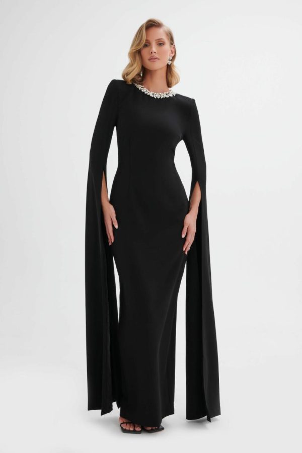 Lavish Alice KELLY Cape Sleeve Maxi Dress – Black