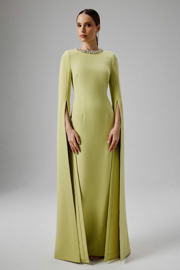 Make a stunning entrance in our KELLY Maxi Dress, featuring a vibrant lime green shade that commands attention. Crafted from premium crepe fabric, this sophisticated design showcases elegant long cape sleeves with a dramatic split detail and a beautifully embellished neckline that elevates your look. The flattering silhouette gracefully follows your curves while offering exceptional comfort. Ideal for formal events, weddings, and special occasions, the KELLY Maxi Dress ensures you’ll stand out with confidence and style.