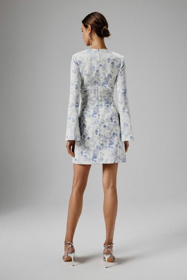 Discover effortless sophistication with the LARA Fluted Sleeve Mini Dress, designed to elevate your style for any special occasion. Crafted from premium crepe in a captivating blue porcelain print, this dress features a beautifully pleated waistband and a chic tulip mini silhouette. The statement flared sleeves with delicate button detailing create an eye-catching look that’s perfect for spring weddings, elegant dinners, or sophisticated daytime events.