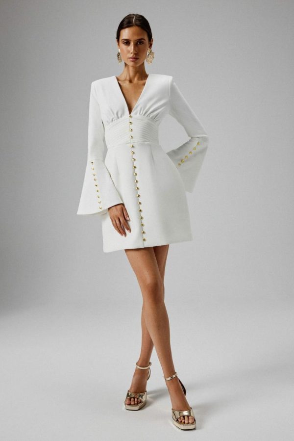 Lavish Alice LARA Fluted Sleeve Mini Dress – White A-Line Style