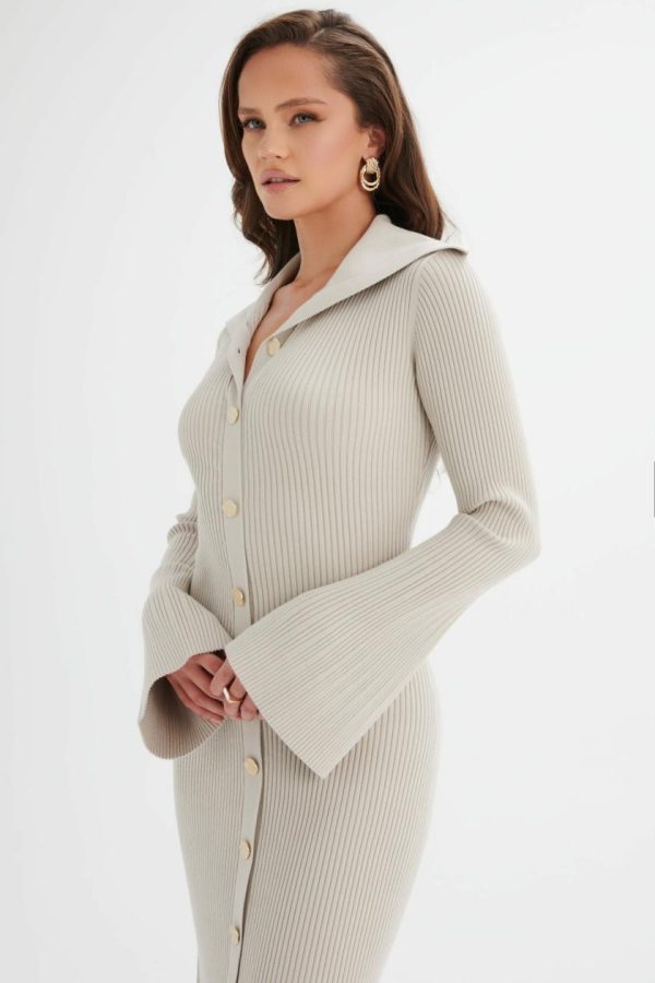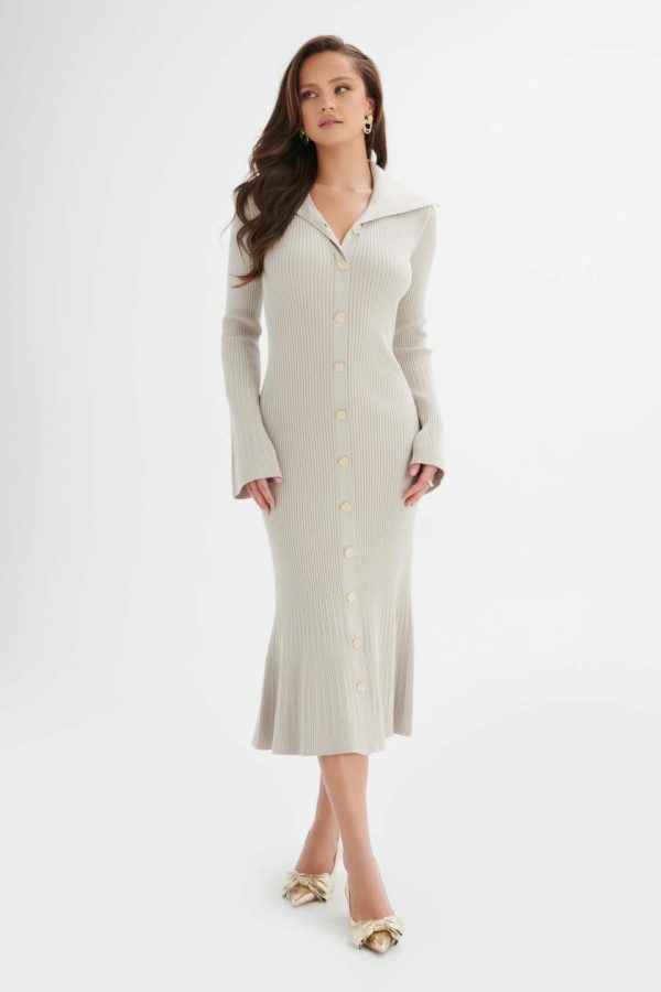 Lavish Alice PARKER Ribbed Knit Dress in Stone
