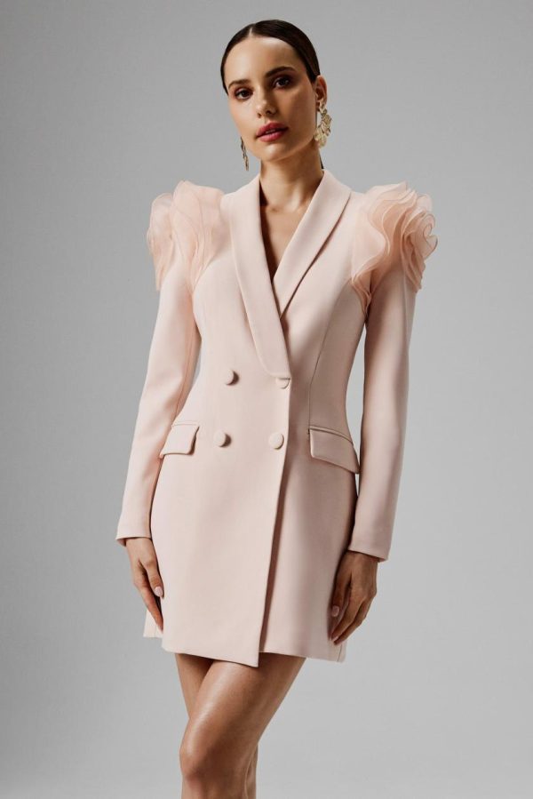 Lavish Alice RIA Organza Rose Sleeve Blazer Dress – Light Pink