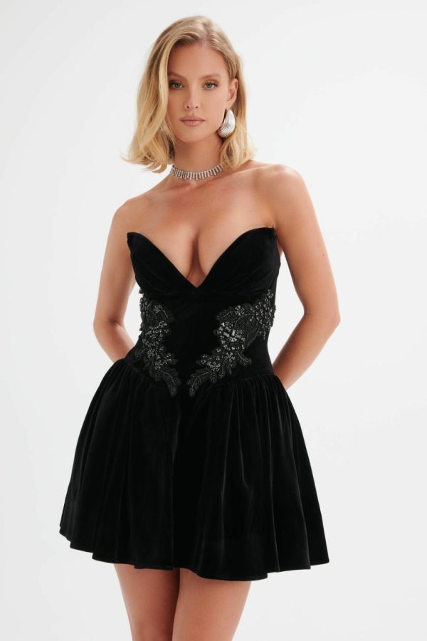 Lavish Alice SELENA Black Velvet Mini Dress with Jeweled Applique