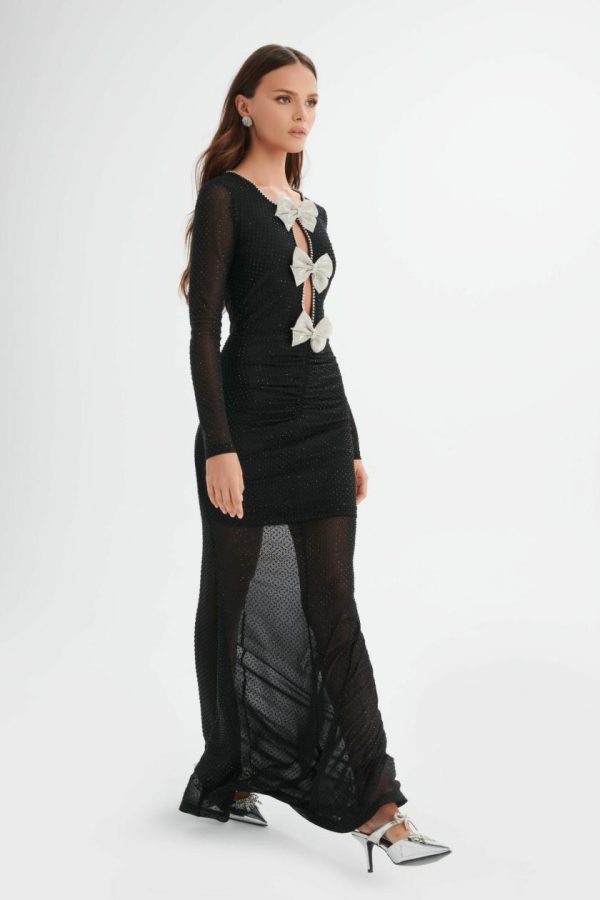Lavish Alice VERITY Black Rhinestone Mesh Maxi Dress
