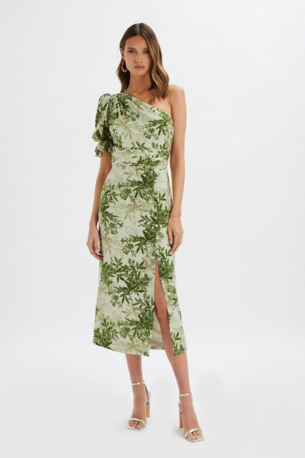 Elevate your summer style with the NAKIA Asymmetric Pleeve Midi Dress, featuring a stunning botanical print that brings fresh sophistication to your wardrobe. The dramatic asymmetric puff sleeve design creates a fashion-forward silhouette while maintaining exceptional comfort. A graceful front split adds movement and elegance, making this the ultimate statement piece for your warm-weather occasions.