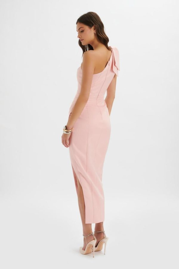 Meet the show-stopping CECELIA Satin Bow Shoulder Wrap Dress In Dusty Pink, your ultimate choice for unforgettable wedding moments. This elegant maxi dress showcases a beautifully crafted asymmetric wrap skirt with precision pleating that creates a sophisticated, figure-flattering silhouette. The contemporary one-shoulder design and dramatic asymmetric neckline deliver modern elegance, while the exquisite statement bow shoulder adds a touch of romantic glamour. Expertly tailored to enhance your natural curves, the close-to-body fit celebrates the feminine form with timeless grace. Rendered in a soft dusty pink hue, this luxurious dress elevates any bridal party with its premium craftsmanship and undeniable charm.