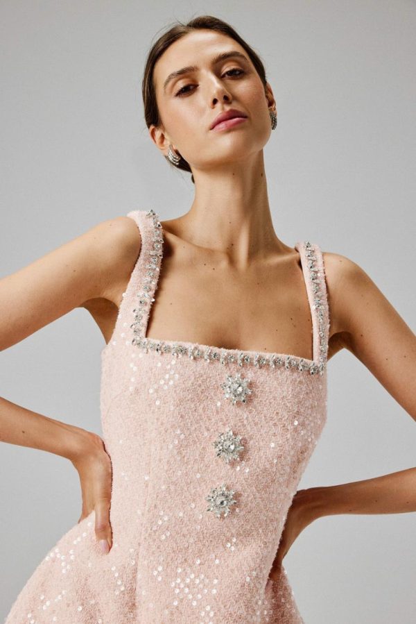 Lavish Alice ZOEY Embellished Boucle Tulip Mini Dress – Blush Pink